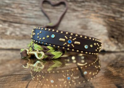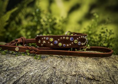 Browse a few of our latest designs below. View our available high quality materials (our leathers, biothane colors and crystals). If you have any questions or would like to place an order for collars or leashes, please visit us on our Facebook Page while we work on adding online ordering to our website.
